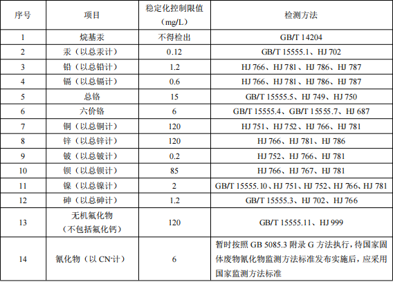 1.根据hj/t299制备的浸出液中有害成分浓度不超过表1中允许填埋控制限值的废物;