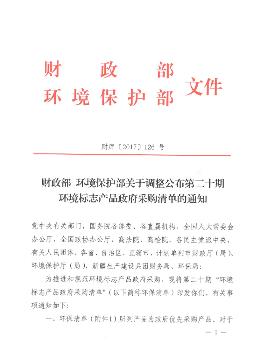 财政部 环境保护部关于调整公布第二十期环境标志产品政府采购清单的通知