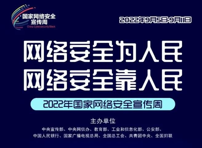 9月5日至11日,是2022年国家网络安全宣传周。此次宣传周的主题是“网络安全为人民,网络安全靠人民”。