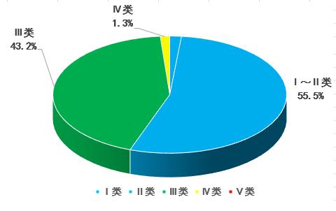 2022111,全省主要流域总体水质为优。监测的375个断面中,ⅰ~ⅲ类水质比例98.7%,其中ⅰ~ⅱ类水质比例55.5%。各类水质比例如下:ⅰ类占1.6%,ⅱ类占53.9%,ⅲ类占43.2%,ⅳ类占1.3%,无ⅴ类和劣ⅴ类水。