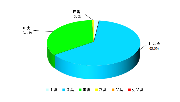 2023年1―12月,全省主要流域总体水质为优,国控断面ⅰ~ⅲ类水质比例99.0%,ⅰ~ⅱ类水质比例68.6%;国控及省控断面ⅰ~ⅲ类水质比例99.5%,其中ⅰ~ⅱ类水质比例65.3%,各类水质比例如下:ⅰ类占1.9%,ⅱ类占63.5%,ⅲ类占34.1%,ⅳ类占0.5%,无ⅴ类和劣ⅴ类水。