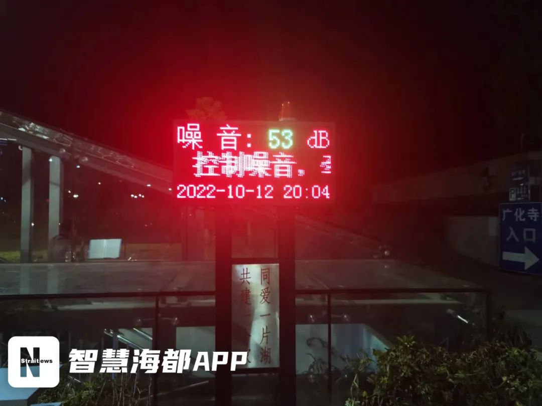 10月12日晚上,记者在噪声自动监测设备上看到,噪音值从之前的7、80分贝降到了50分贝左右。按照《城市区域噪声标准》规定,居住、商业、工业混杂区,噪声排放限值昼间60分贝,夜间50分贝标准。