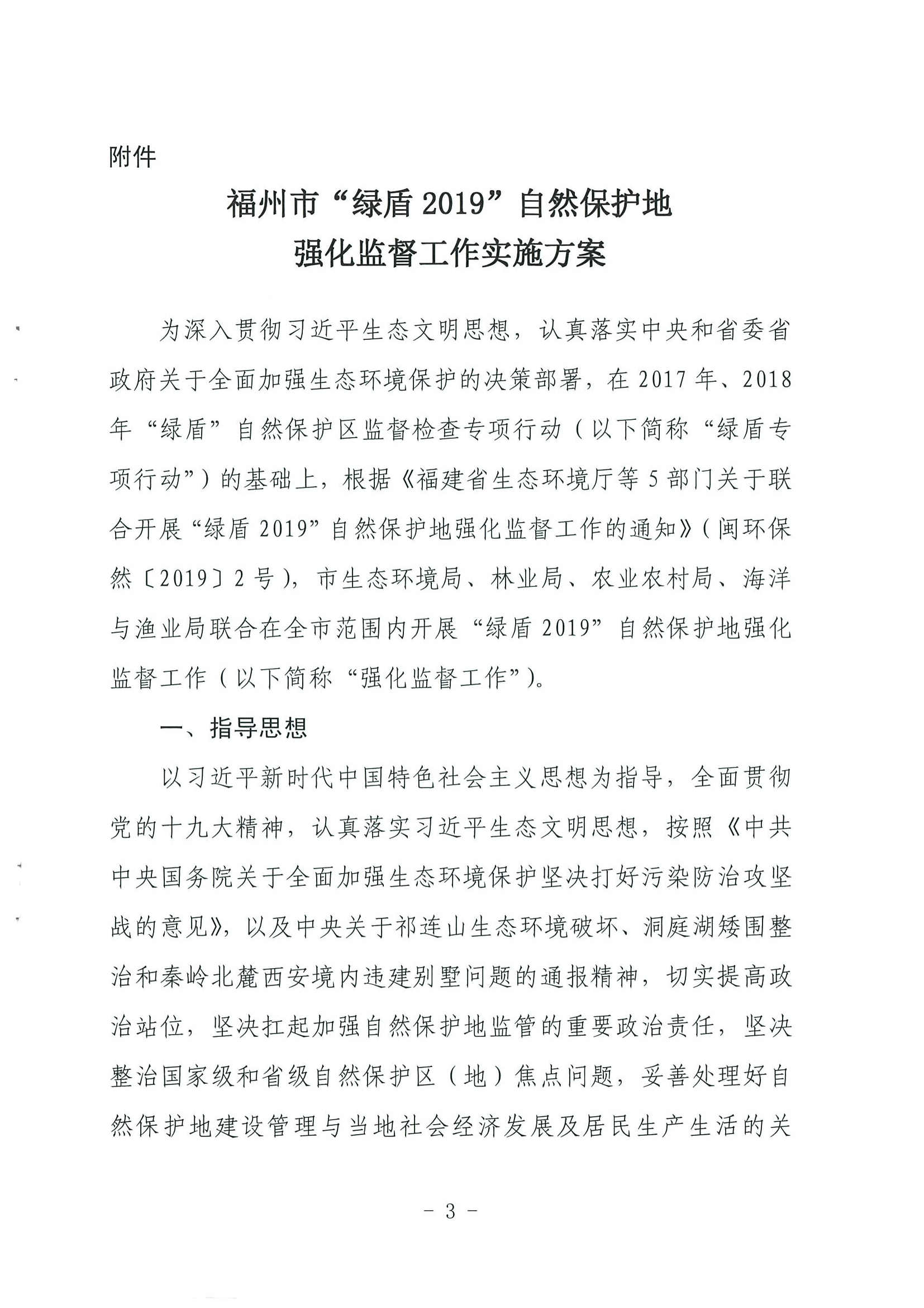 福州市“绿盾2019”自然保护地强化监督工作实施方案-凯发k8