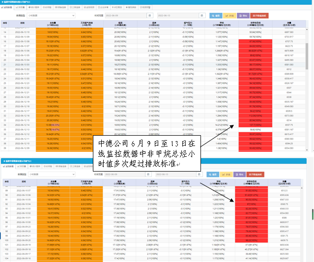 2022年6月20日,福清生态环境局执法人员对福建省污染源自动监控系统的在线监控数据进行调阅并开展核查,发现福建中德能源有限公司2022年6月9日至13日在线监控数据中非甲烷总烃小时值超过了环评及批复中《合成树脂工业污染物排放标准》表5特别排放限值60毫克/立方米的要求,超标70余次记录中最大值为137.7毫克/立方米。随即,福清生态环境局执法人员对中德公司进行了现场检查,执法人员现场调阅该公司在线监控设备调试和保养记录,根据维保记录及相关材料佐证,其在线监控设备比对合格,数据真实有效,6月9日至13日为正常运行,自动监控系统的超标数据真实反映了该公司的污染物排放情况。