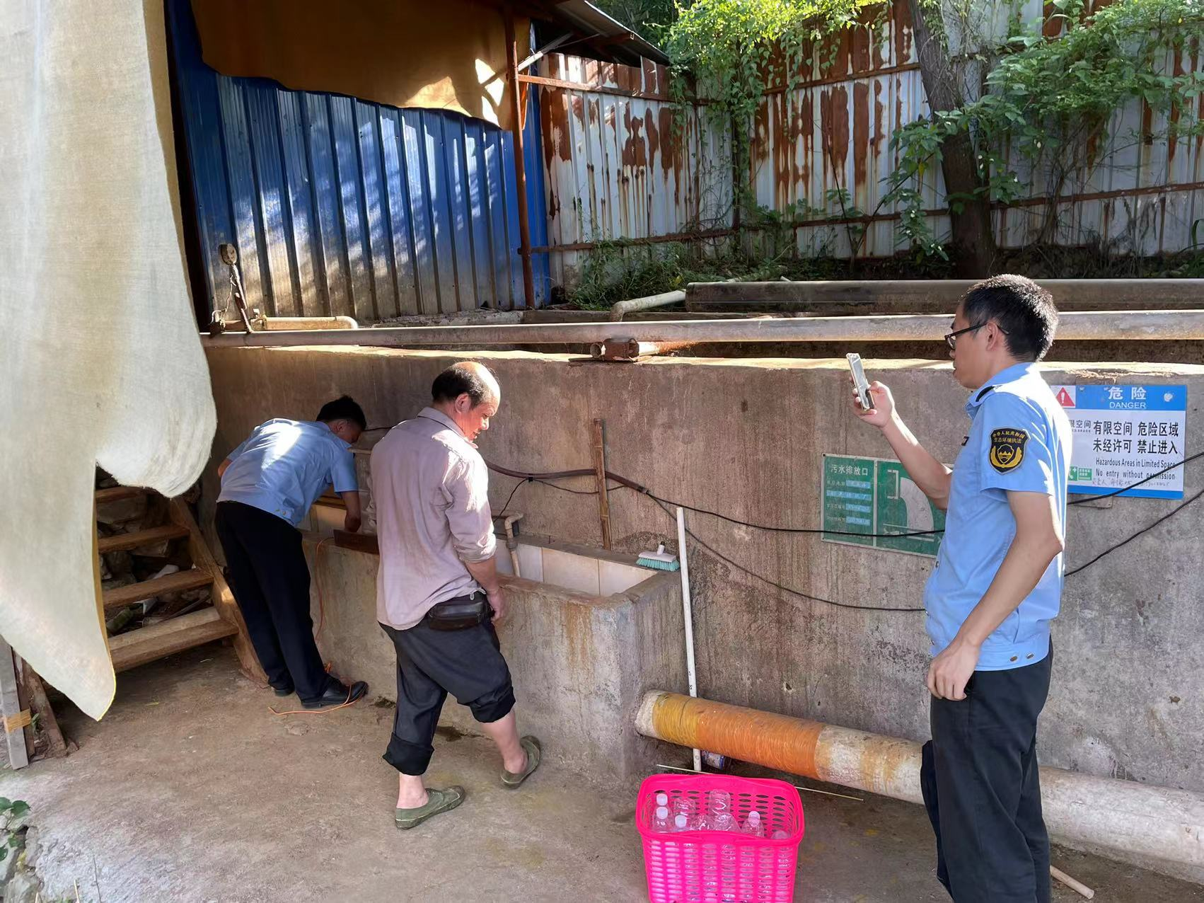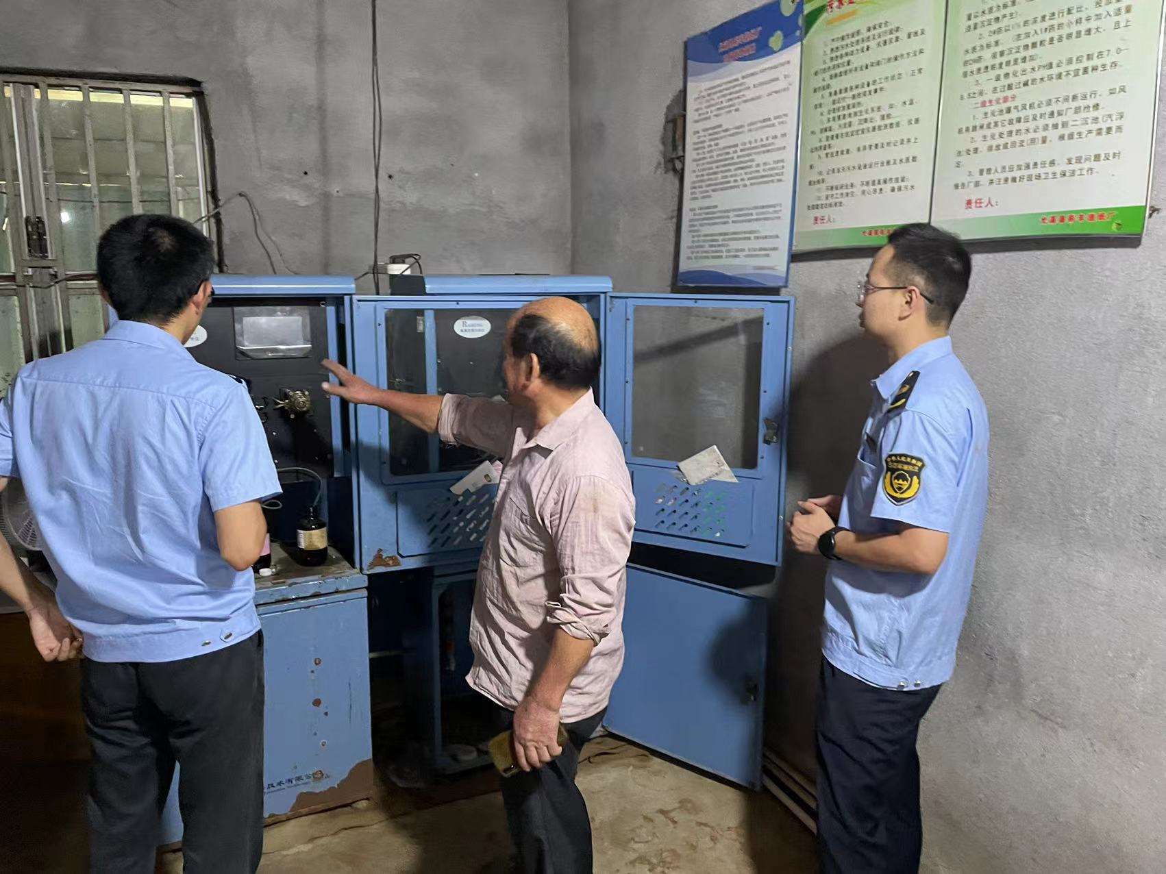 执法人员检查该公司生产车间 执法人员检查该公司在线监控设备