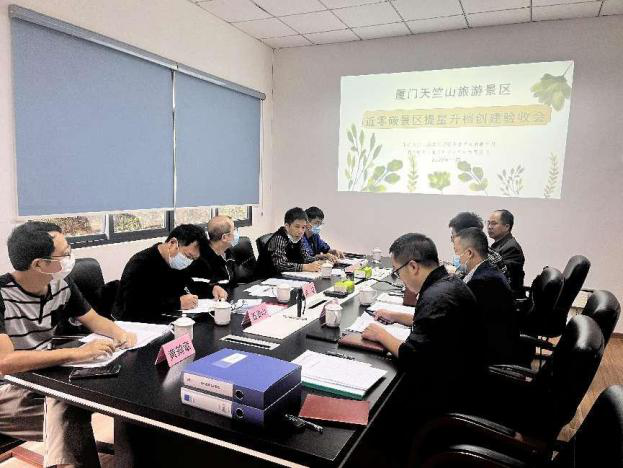 二是提升碳汇、低碳减排,打造近零碳景区示范工程。积极践行 “绿水青山就是金山银山”理念,围绕生态价值创造性转化,积极探索“近零碳”景区建设,通过节水器具改造、禁塑工作推行、景区全电厨房提升以及太阳能路灯推广应用、新能源车辆场景应用、建设雨水利用工程、加强森林植物养护,提升景区碳汇能力等形式,积极探索近零碳景区建设,打造海沧区首个“二星级”近零碳景区——厦门天竺山旅游景区。