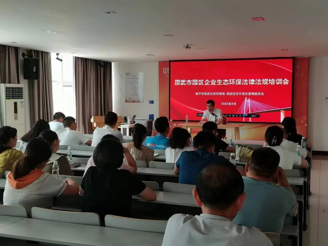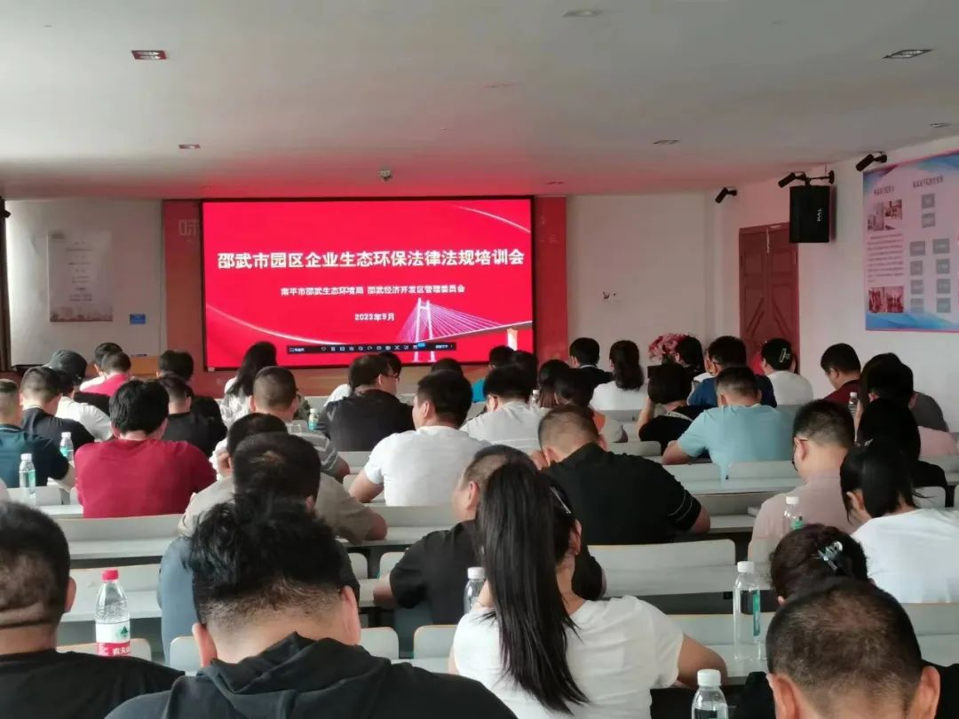 为深入学习贯彻习近平生态文明思想,进一步增强邵武市各企业环保法治意识,压实企业生态环境保护主体责任,9月26日-27日,南平市邵武生态环境局分别在邵武市经济开发区城郊产业园和金塘产业园召开生态环境保护法律法规培训会,园区所有企业(包括已投产企业和在建企业)董事长、总经理及环保员参加培训。