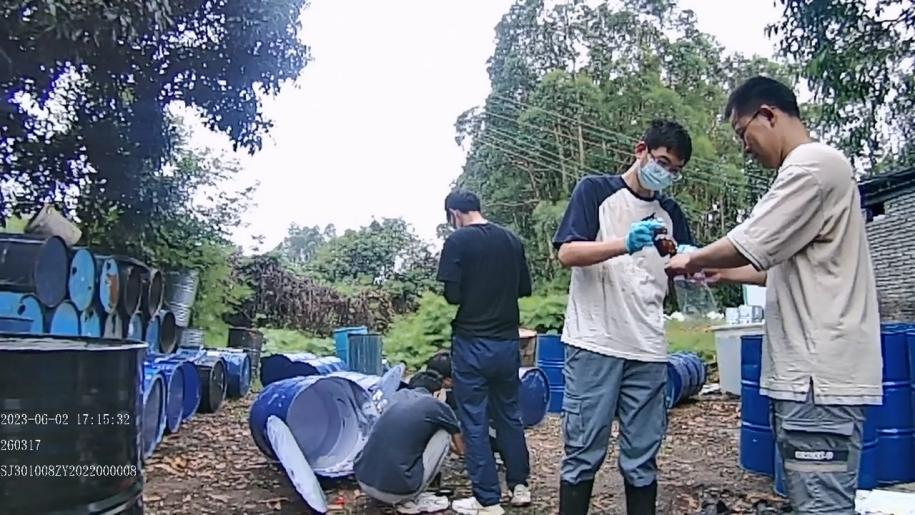 2023年6月2日,厦门市海沧生态环境局接群众反映,称位于厦门市海沧区东孚街道寨后社区村林后社内有存放废化学品桶。厦门市海沧生态环境局执法人员立即赶赴现场,并利用无人机进行核查。现场发现位于该场地堆放的东南侧区域里有28个有残留液体的废桶,其中有废聚氨脂轮胎原液桶22个(其中1个废桶有聚氨脂轮胎原液标识,其它21个废桶标识已撕毁),里面有白色树脂类物质残留,未干化、固化,初闻有挥发性刺鼻味;无标识废桶6个,里面有胶状透明物质残留,未干化、固化,初闻有挥发性刺鼻味。厦门市海沧生态环境局随即将该情况向厦门市生态环境保护综合执法支队汇报,并一同与海沧公安分局、属地街道和社区开展进一步调查。经鉴定,厦门市海沧区某废桶经营部厂区内的28个废桶及其内容物为危险废物且为毒性。