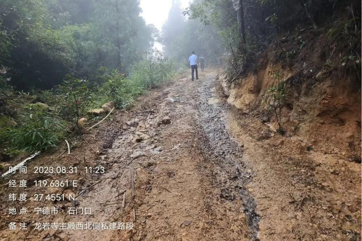 图为翟某某未经有关部门批准,擅自在寿宁县南山顶风景区自然保护区内龙岩寺附近进行道路修整拓宽