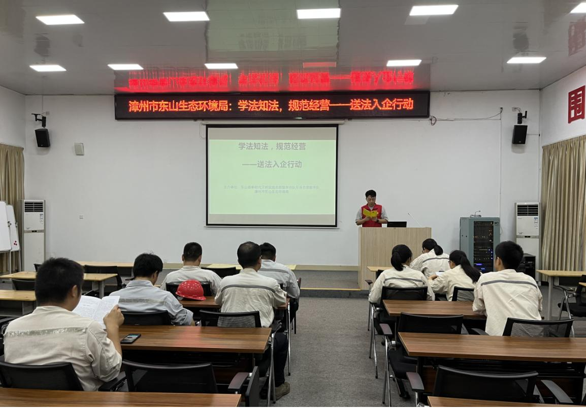 漳州市东山生态环境局开展以精准普法、以案释法为主题的环保普法活动,致力增强中小型企业知法守法意识。2023年以来,共开展“送法入企”“普法讲座”等各种形式的普法宣传活动7次,覆盖企业50余家,参与人数达200余人。