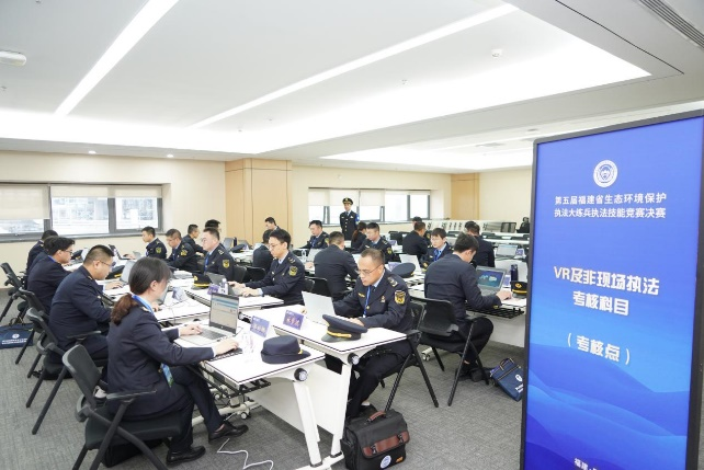 全省生态环境执法工作会议结束后,省生态环境厅联合省直有关部门组织开展了第五届福建省生态环境保护执法大练兵执法技能竞赛决赛。本次竞赛围绕科学精准执法,做到全员参与、优中选优,注重实战实效、科技助力,全面检验参赛选手业务理论素养、线上线下检查能力和执法设备实操技巧等综合本领。