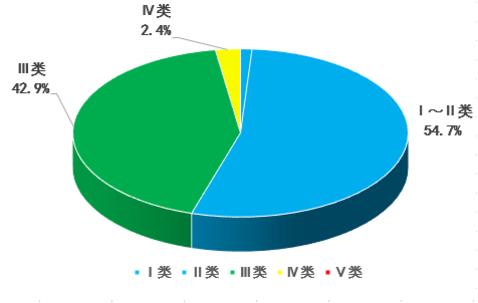2022年1―8月,全省主要流域总体水质为优。监测的375个断面中,ⅰ~ⅲ类水质比例97.6%,其中ⅰ~ⅱ类水质比例54.7%。各类水质比例如下:ⅰ类占1.1%,ⅱ类占53.6%,ⅲ类占42.9%,ⅳ类占2.4%,无ⅴ类和劣ⅴ类水。小流域考核断面ⅰ~ⅲ类水质比例为95.3%。