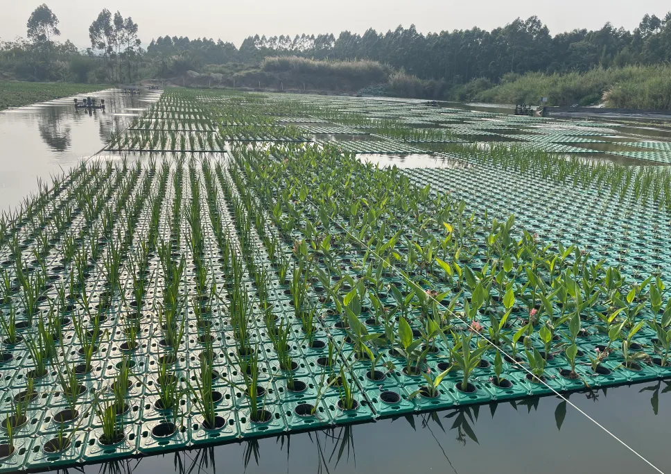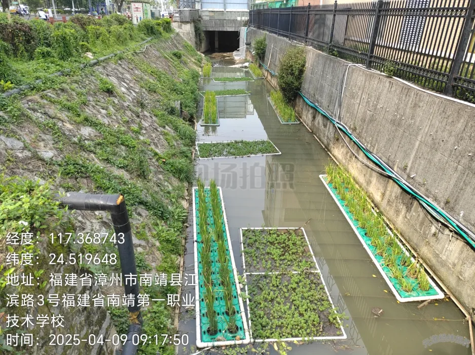 建设人工湿地,打造生态过滤池。通过利用土壤,人工介质,植物、微生物的物理、化学、生物三重协同作用,对污水污泥进行吸附、过滤、氧化还原、植物遮蔽等一系列处理,使水体达标排放。目前已投入使用的南靖高新园上廍排水口上游人工湿地占地约33亩,安装生态浮岛约5800平方米,有效解决了上廍排水口水质超标问题。
