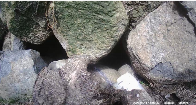 ▲该养殖场溪流旁山体中发现一个缝隙有深色水样流出