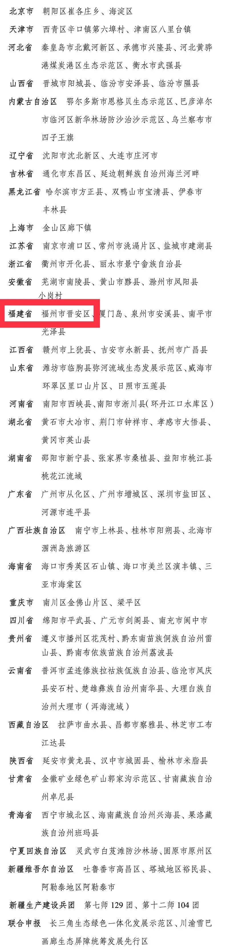 福州市晋安区上榜!