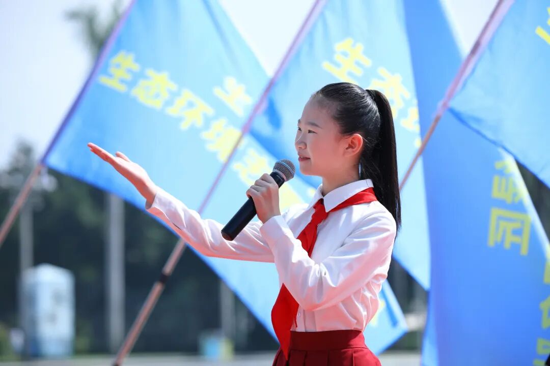 来自厦门外国语学校附属小学的志愿者王洛伊宣讲《筼筜湖的诗意蝶变》