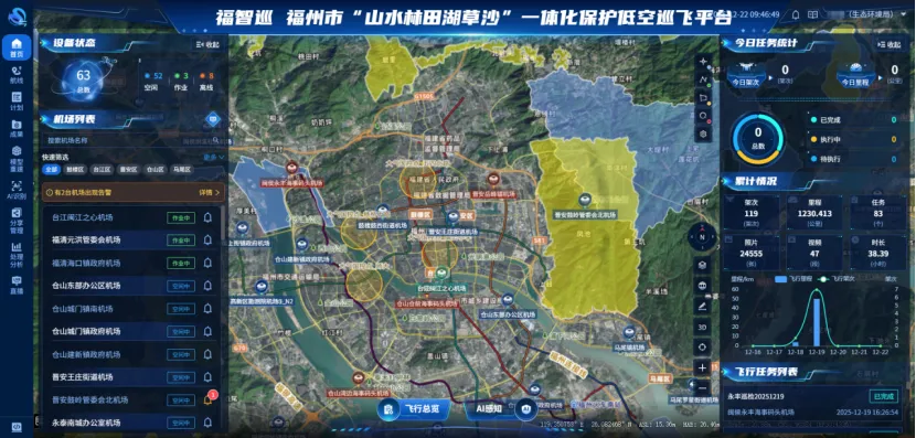 科技赋能,创新构建“空天地一体”监管体系。围绕省委、省政府“构建从山顶到海洋的保护治理大格局”部署,福州率先打造“山水林田湖草沙”一体化低空政务服务场景,将9大生态环境业务领域纳入智慧监管范畴。通过布设63处无人机机场,实现4750平方公里各类生态环境敏感区全覆盖。利用高频次的低空作业飞行,借助ai智能识别与“线上预警 线下核查”快速响应机制,实现对生态破坏行为的“零容忍”精准管控。同时,依托“多规合一”平台,推动生态环境分区管控成果在项目选址、土地开发等环节落地应用,实现生态保护红线与城镇开发、产业布局等规划的无缝对接,从源头筑牢生态安全屏障。