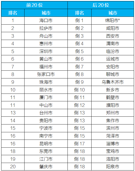 空气质量排名前20位和后20位城市名单