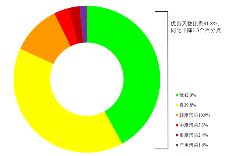 2月,全国339个地级及以上城市平均空气质量优良天数比例为81.8%,同比下降1.3个百分点;平均重度及以上污染天数比例为4.0%,同比上升2.3个百分点;由沙尘天气导致的平均超标天数比例为3.9%。