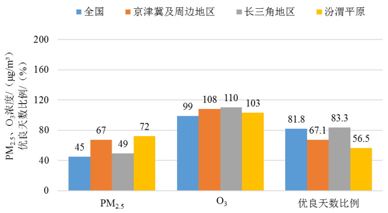 2月,汾渭平原13个城市pm2.5平均浓度为72微克/立方米,同比下降14.3%;o3平均浓度为103微克/立方米,同比上升7.3%。