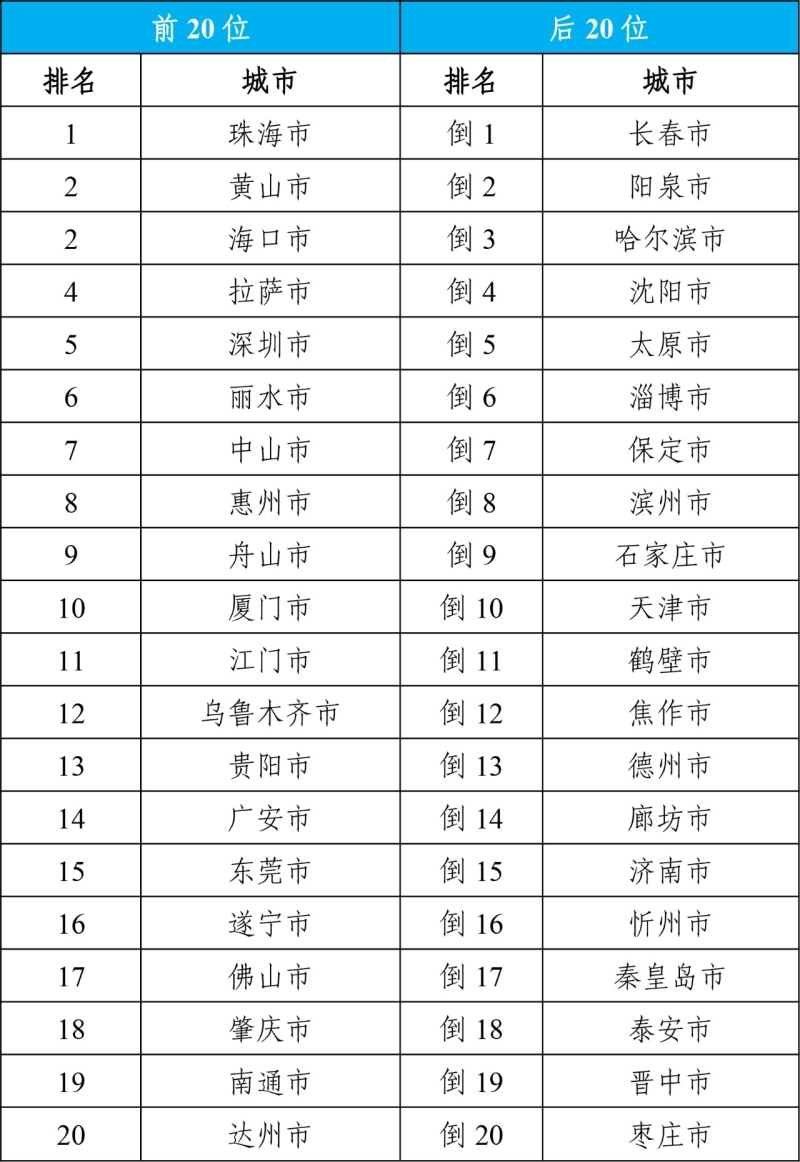 4月,168个重点城市中:空气质量排名前20位城市依次是珠海、黄山、海口等城市(从第1名至第20名);空气质量排名后20位城市依次是长春、阳泉、哈尔滨等城市(从倒数第1名至倒数第20名)。见附表1。