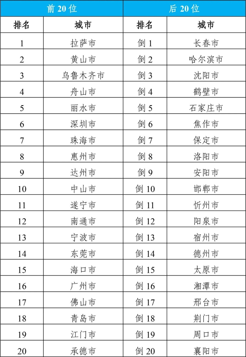 2024年4月168个重点城市空气质量排名前20位和后20位城市名单