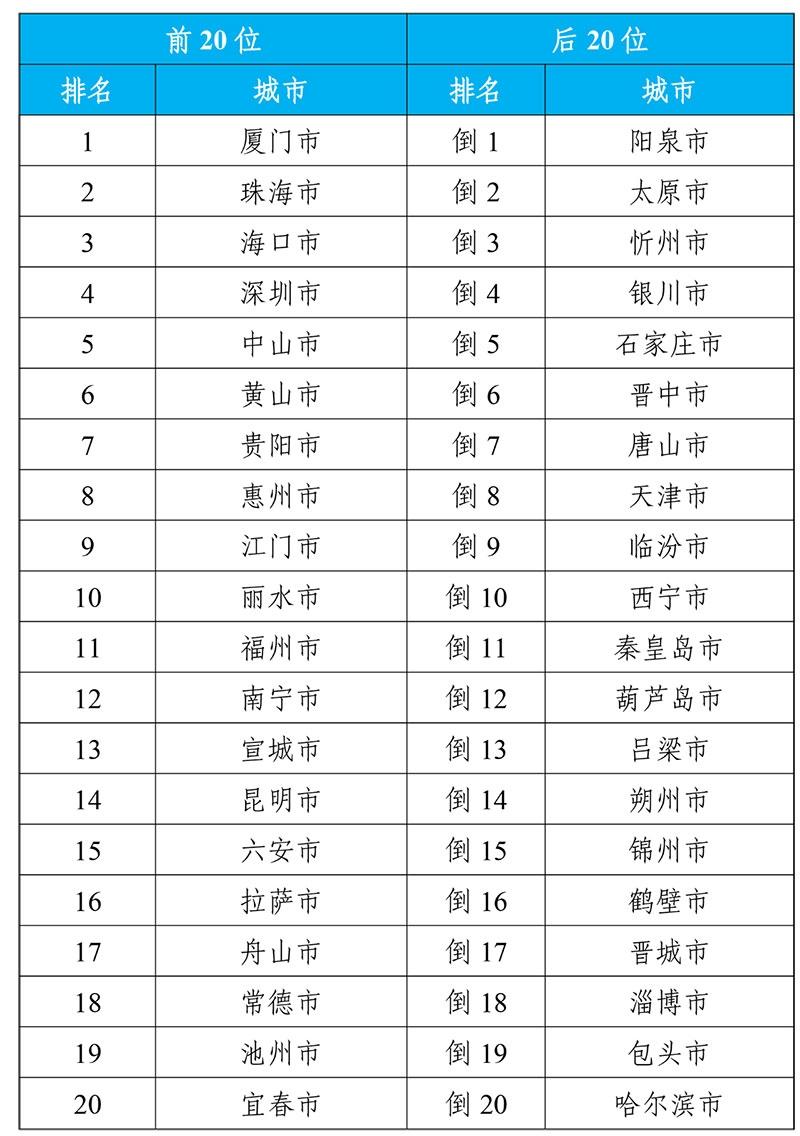 2024年7月168个重点城市空气质量排名前20位和后20位城市名单