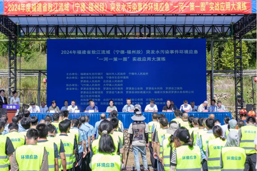 演练由福建省生态环境厅、福州市人民政府、宁德市人民政府联合主办,福州、宁德两地政府及相关部门,九市一区生态环境部门分管领导、环境应急管理机构负责人、业务骨干参加演练。