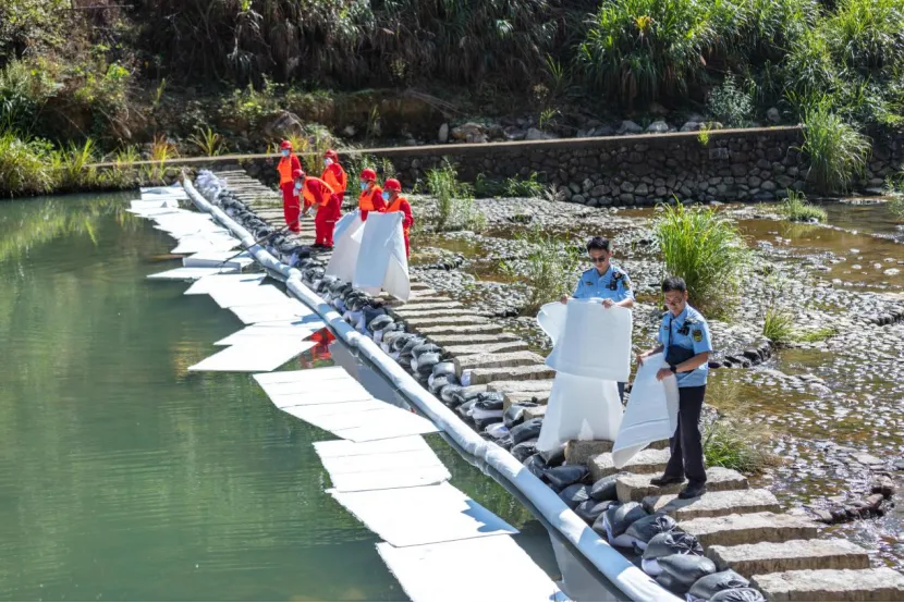 本次演练模拟宁德某企业焦油泄漏引发跨界水污染突发环境事件,从宁德到福州全过程演练接警、报告、研判、响应和处置流程。通过应急监测真实测样、水利闸坝真实调度、应急处置真实行动等,实战展示源头控制、物资调用、上下游联合指挥调度、流域空间设施利用等一系列处置措施,重点检验流域“一河一策一图”应急响应能力,推动“以空间换时间”理念落地见效。