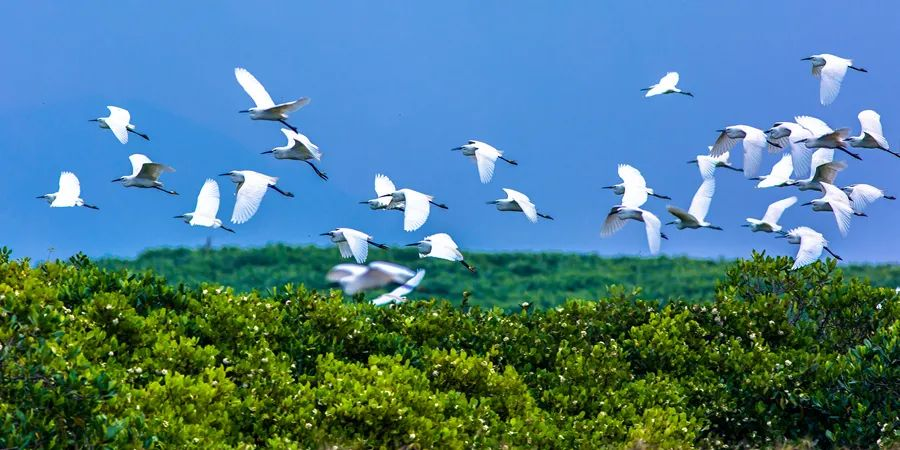 漳江口红树林国家级自然保护区鹭鸟翩翩起舞。戴园笙摄