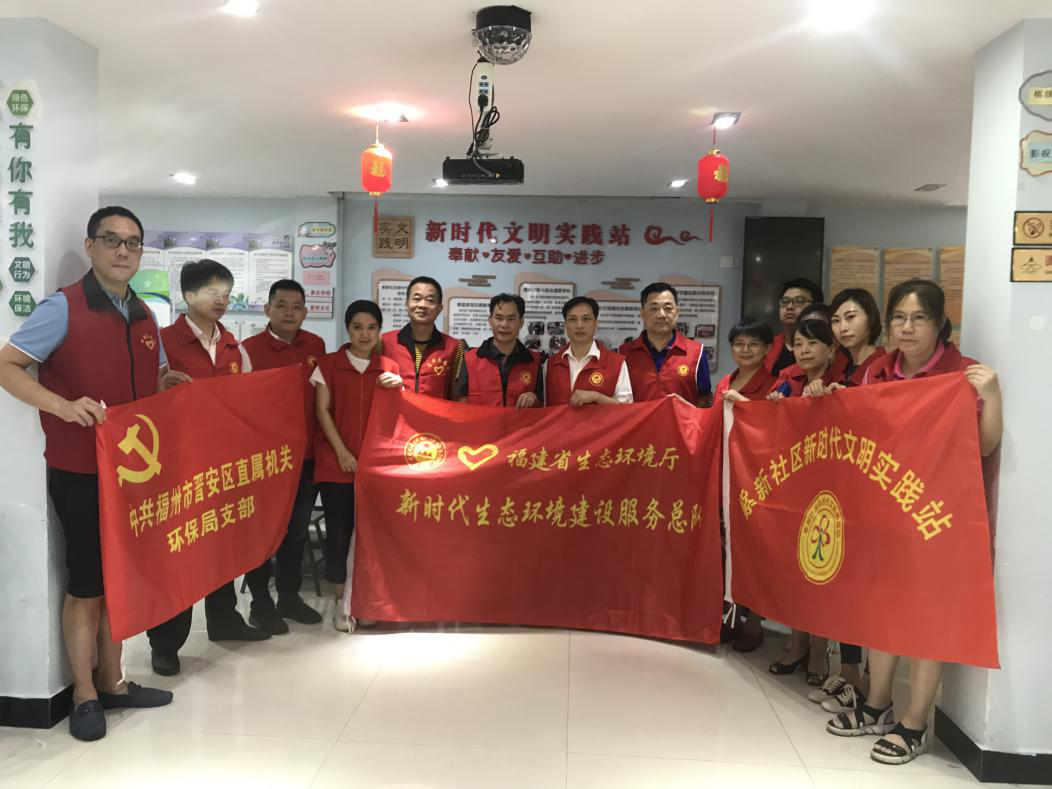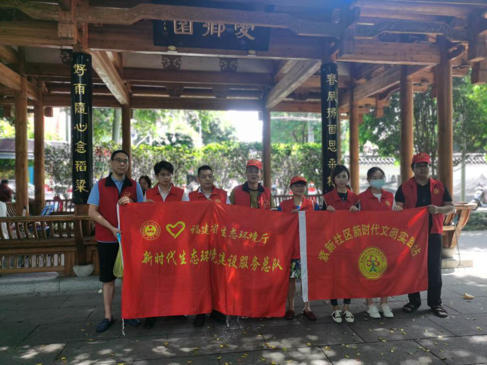 随后,省生态环境厅新时代生态环境建设服务总队、晋安区环保局党支部、紫新社区新时代文明实践站志愿者们首次携手共赴晋安河畔开展“公民生态环境行为规范”“垃圾不落地”“文明出行”等宣传活动。