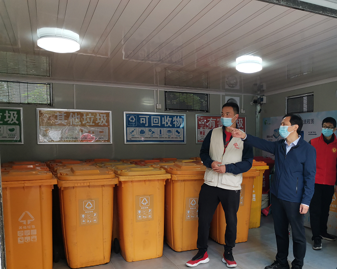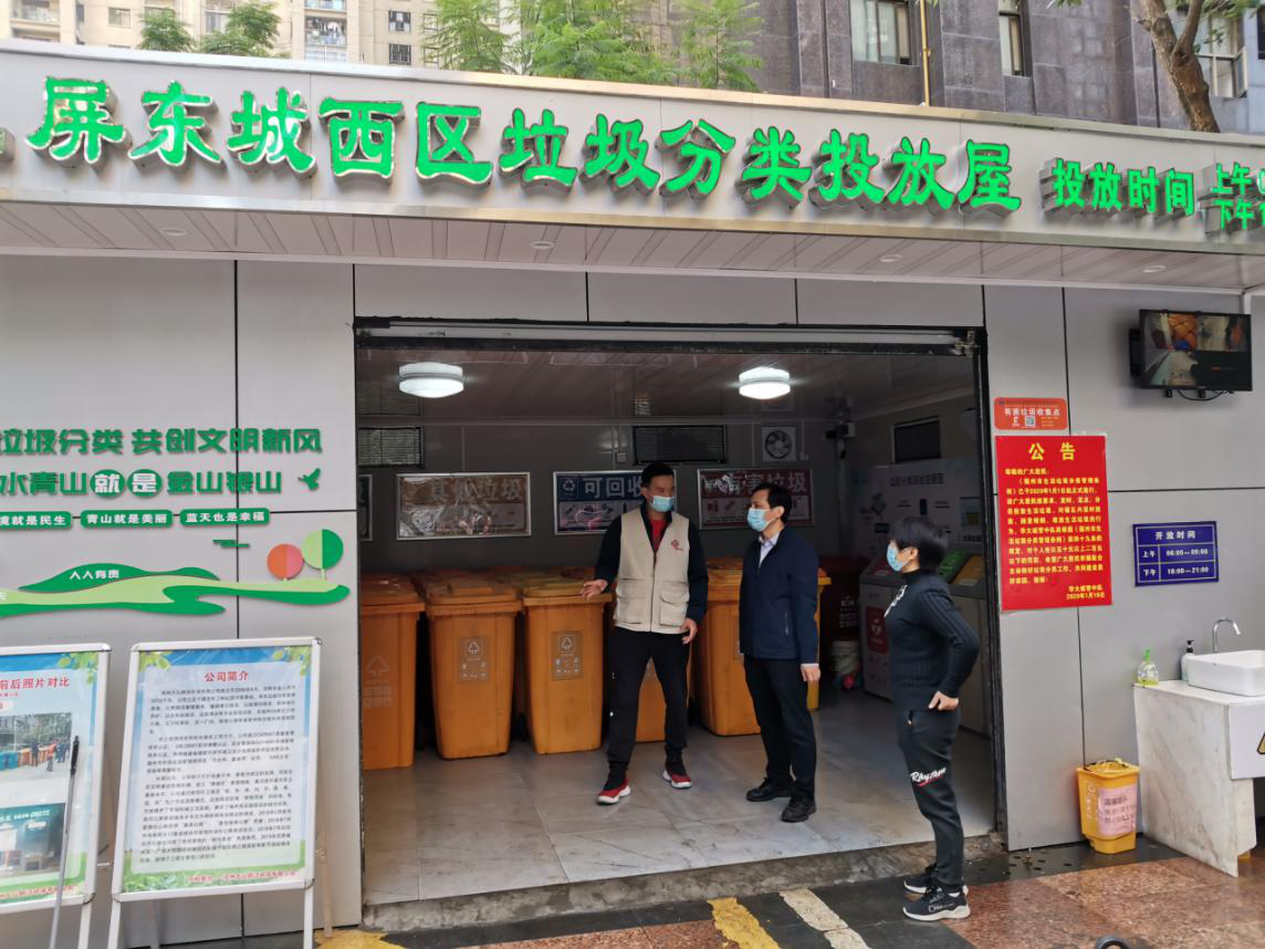志愿服务活动结束,省生态环境厅机关党委志愿者还察看了屏东城西区垃圾分类投放屋,了解小区垃圾分类情况,探讨进一步加强垃圾分类宣传力度,让群众充分了解生活垃圾分类的好处,做到垃圾分类准确投放。