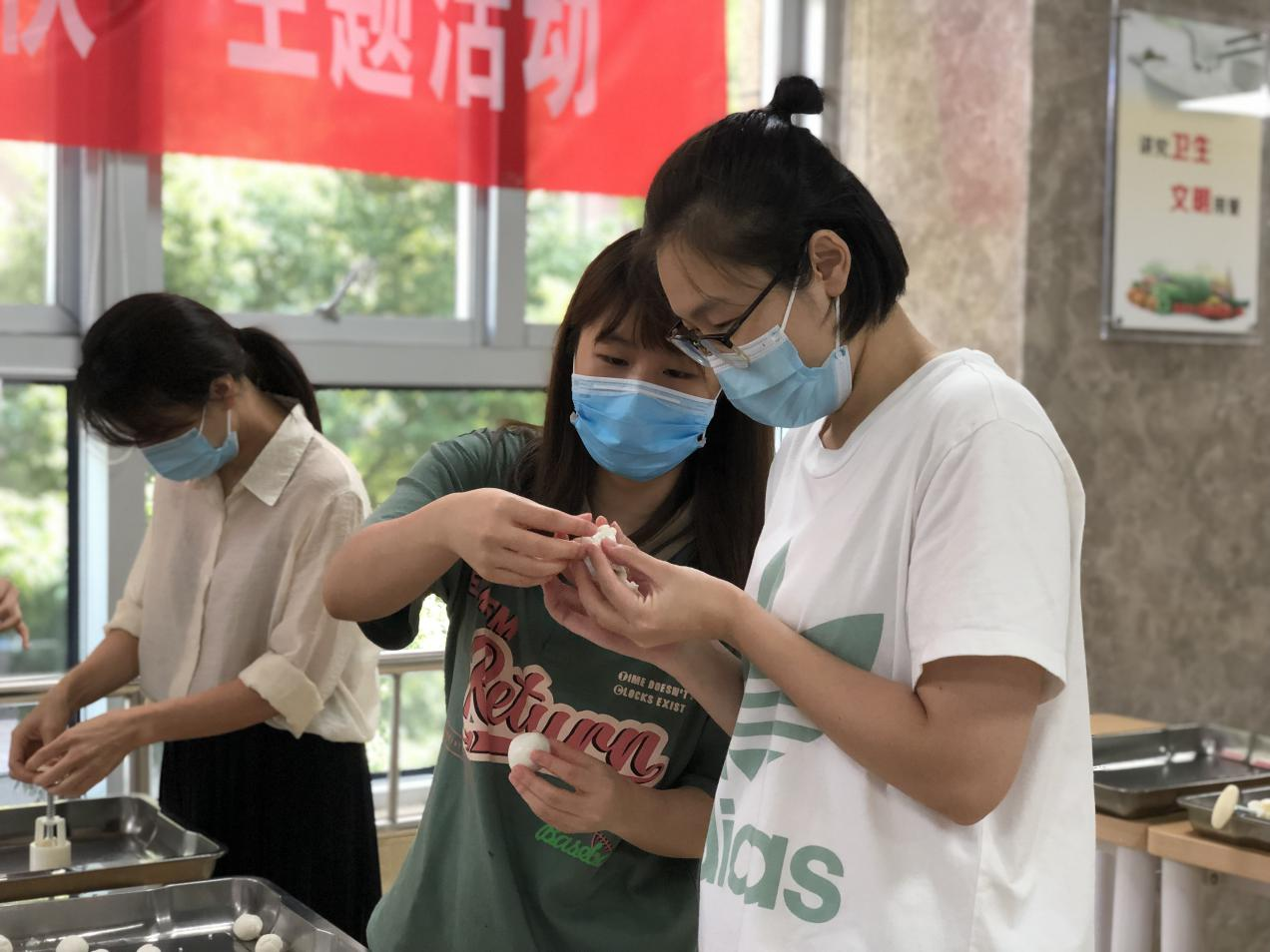 紧接着,活动进入了主要环节:自制冰皮月饼。调和好的月饼皮,豆沙馅、香橙馅等食材和模具已准备就绪,等着大家大显身手。大多数人都是第一次亲手制作月饼,他们兴趣盎然、跃跃欲试,在师傅的示范下,搓饼皮、称馅料、压模具,不一会儿功夫,一个个手工自制的冰皮月饼诞生了!经过多次的尝试,做的月饼一个比一个好看,一些心灵手巧的同志更是主动分享自己的方法和经验,成型的小小的月饼拉近了彼此距离,也构建出了温馨和谐的生态大家庭。