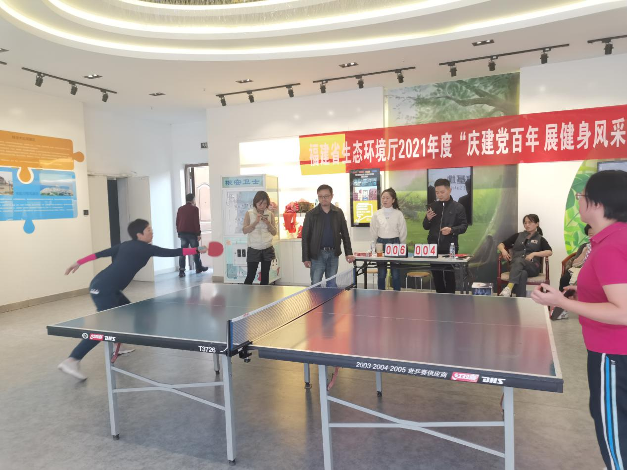 在热烈庆祝中国共产党成立100周年之际,为丰富我厅干部职工业余生活,增强干部职工的身体素质,集中展现积极向上的精神风貌,12月3日下午,福建省生态环境厅在省辐射站文体活动室举办了2021年度“庆建党百年·展健身风采”乒乓球比赛。
