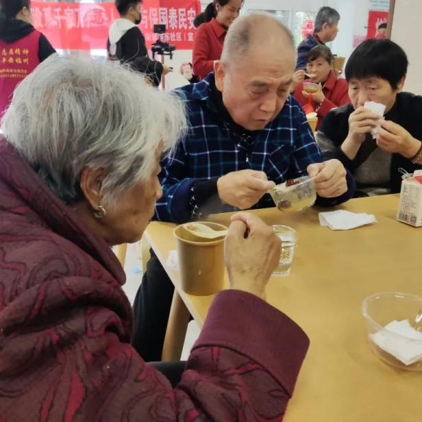 演出结束后,省生态环境厅和党建联盟单位的志愿者们分工配合,有的摆碗,有的装粥,有的端盘,到处都是“志愿红”忙碌的身影。期间,屏东社区居民也闻香而来,志愿者们赶忙也为他们端上精心熬制的拗九粥。一箸一瓢羹都是孝!志愿者们传递的不仅仅是一碗甜甜的拗九粥,更是传递着中华民族几千年“敬老、爱老、孝老”传统美德。祝愿这一延绵数百年的福州特有习俗进一步发扬光大!