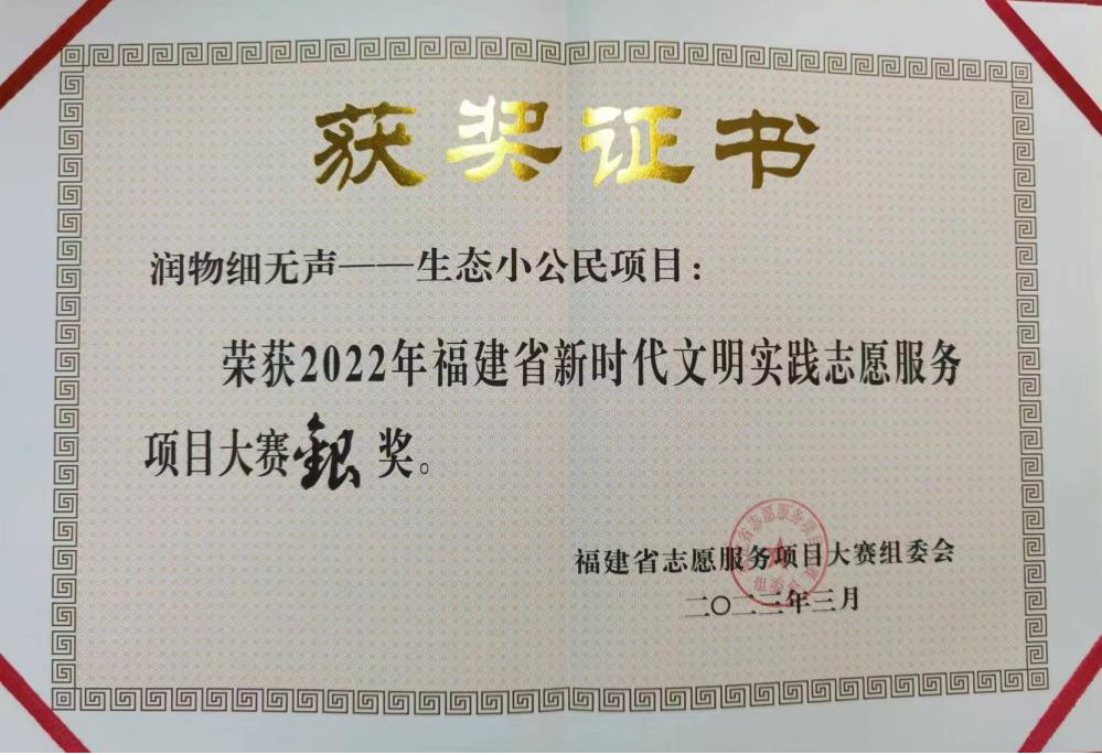 我厅直属单位福建省福州环境监测中心站“‘润物细无声’——生态小公民”志愿服务项目在入围决赛的45个项目中获得银奖,现予以表扬。