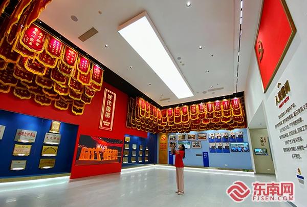 9月9日,“文明中国”主题采访报道组在挂满锦旗的时代楷模“漳州110”忠诚馆内采风。(东南网记者 颜财斌 摄)