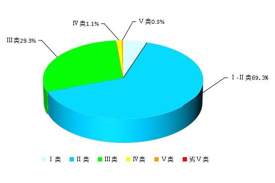 2024年1―3月,全省主要流域总体水质为优,国控断面ⅰ~ⅲ类水质比例99.0%,ⅰ~ⅱ类水质比例70.5%;国控及省控断面ⅰ~ⅲ类水质比例98.7%,其中ⅰ~ⅱ类水质比例69.3%,各类水质比例如下:ⅰ类占5.1%,ⅱ类占64.3%,ⅲ类占29.3%,ⅳ类占1.1%,ⅴ类占0.3%,无劣ⅴ类水。