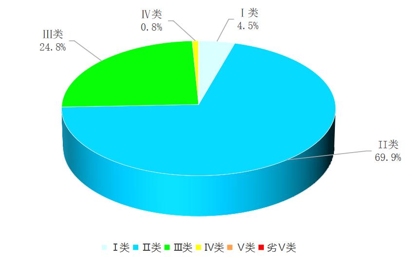 2025年1-5月,全省主要流域总体水质为优,国控断面ⅰ~ⅲ类水质比例99.0%,ⅰ~ⅱ类水质比例70.5%;国控及省控断面ⅰ~ⅲ类水质比例99.2%,其中ⅰ~ⅱ类水质比例74.4%,各类水质比例如下:ⅰ类占4.5%,ⅱ类占69.9%,ⅲ类占24.8%,ⅳ类占0.8%,无ⅴ类和劣ⅴ类水。