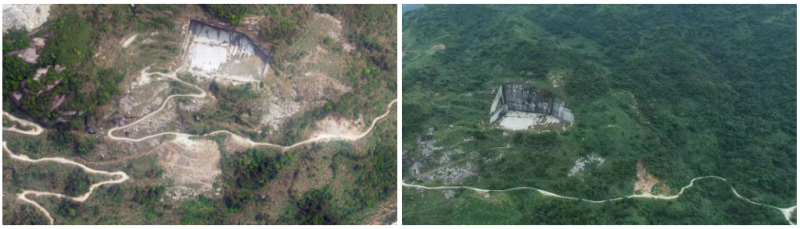 敖江白沙村矿山覆土绿化前 敖江白沙村矿山覆土绿化后