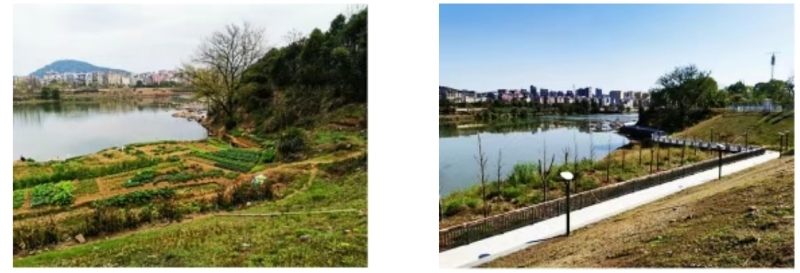 崇阳溪鲤鱼嘴岸线整治前 崇阳溪鲤鱼嘴岸线整治后