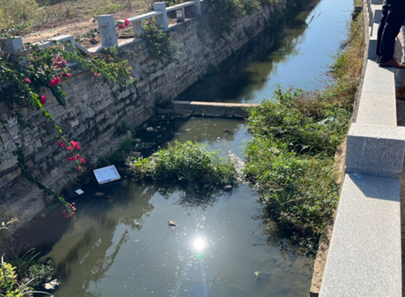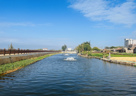 漳浦县六鳌镇新厝村常住人口2115人,因生活污水长期直排、底泥淤积造成坑塘和入海沟渠水体黑臭。在治理过程中,漳浦县充分结合新厝村三面环海淡水资源稀缺和群众种植大葱、地瓜的用水需求,采取控源截污 清淤疏浚 生态修复 资源化利用技术路线,共新建一座260m3/d生活污水处理站,完成底泥清淤11366.84m3、松木护岸184m、松木桩挡墙157m、水生植物1000㎡,有效解决生活污水直排问题,重构池塘水生态。同时,通过安装智能化抽水机等手段,将达标排放尾水经池塘净化后,用于周边苗木和农田基地喷灌,实现服务生态绿色农业发展与改善农村人居环境的双赢目标。