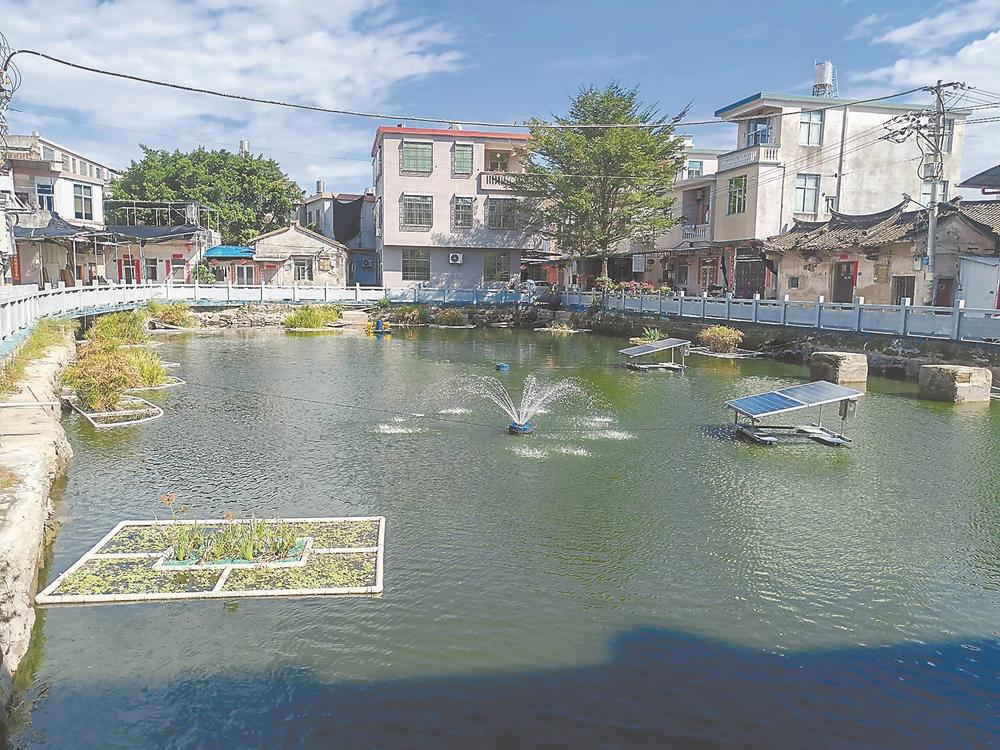 “之前这就是一潭死水,全村的污水都往这里排,散发着阵阵恶臭。”大美村党支部书记沈贵明介绍,去年,村里被列为全县农村黑臭水体治理试点村,经过全面整治,池塘才摘掉“黑臭”帽子。