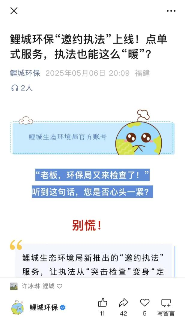 近日,一篇来自鲤城环保推出“邀约执法”公众号文章,让福建火炬电子科技股份有限公司的环保负责人眼前一亮。企业迅速梳理了近期在环保管理方面的困扰,特别是固废规范管理和排污许可证变更流程等难题,第一时间在“鲤城环保”平台完成了预约登记。