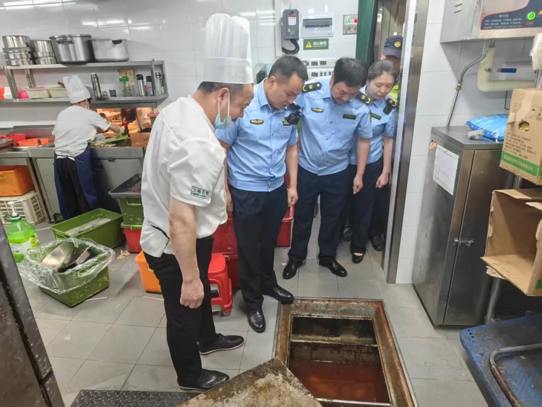 福州市鼓楼生态环境局结合城区餐饮业较多的特点,定期开展餐饮行业专项整治。图为鼓楼生态环境局联合相关部门对辖区餐饮商户较集中的达明美食街进行检查指导,确保餐饮污水规范排放。 柏华军供图