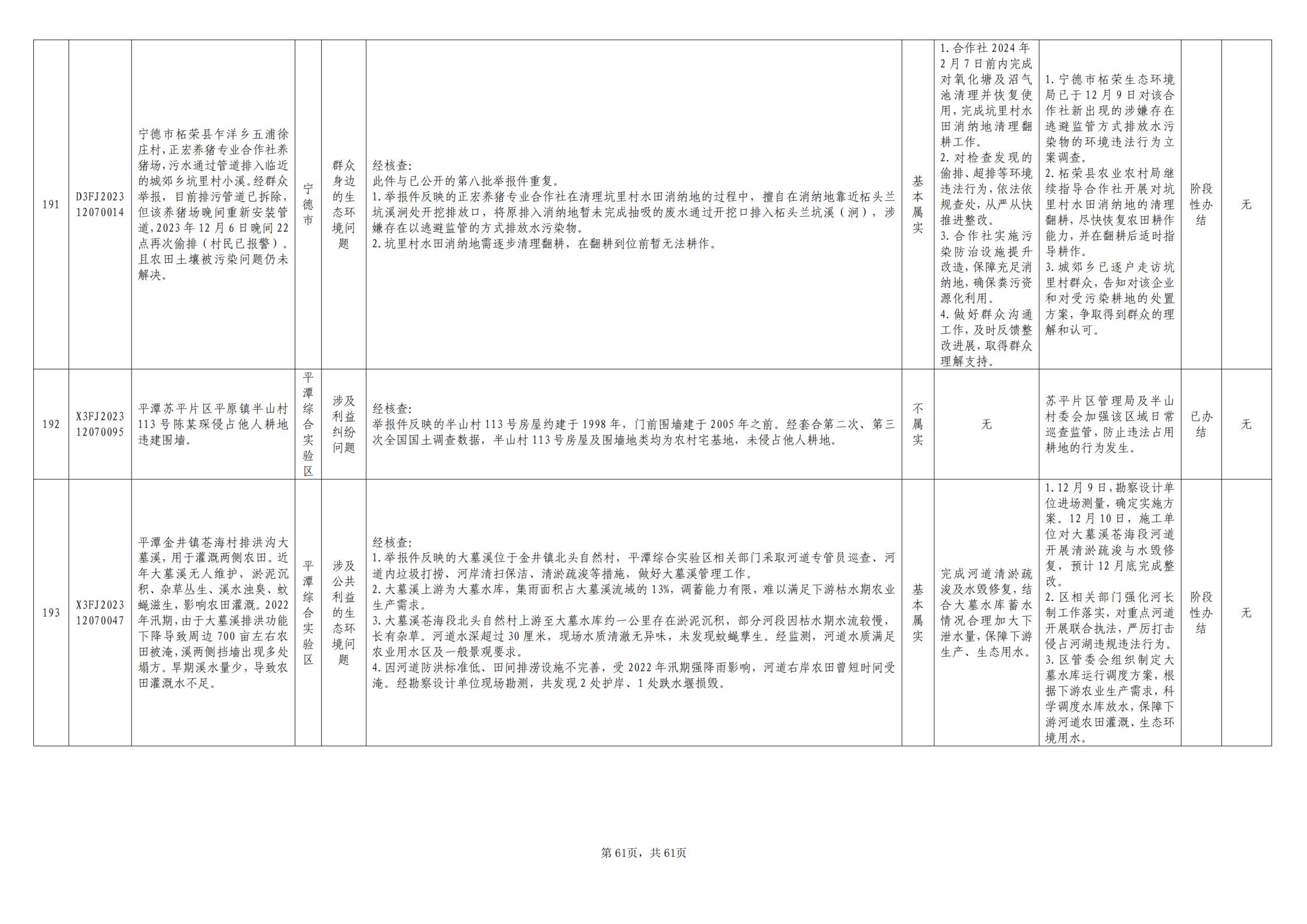 截至12月17日,对中央第一生态环境保护督察组向我省移交的第十六批群众信访举报件193件,各责任单位均按要求上报调查处理情况。根据督察要求,群众信访举报转办和边督边改公开情况一览表将在报纸、网站等媒体上公布。