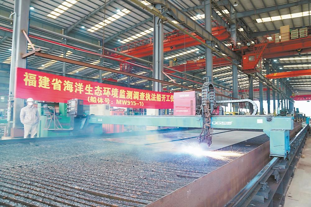 我省首艘海洋生态环境监测船在福安开工(福建日报)