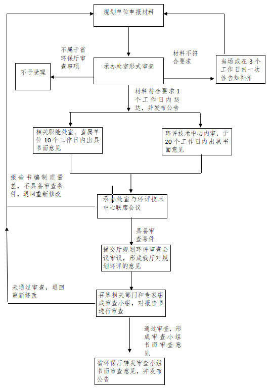 5.若规划环评报告书编制规范,由承办处室提交厅规划环评审查会审议,对审查事项进行集体研究讨论。各相关职能处室、直属单位从各自业务职能角度,从生态保护、污染防治、规划布局、产业结构、环境风险防控等提出意见,形成省环保厅对规划环评的意见。